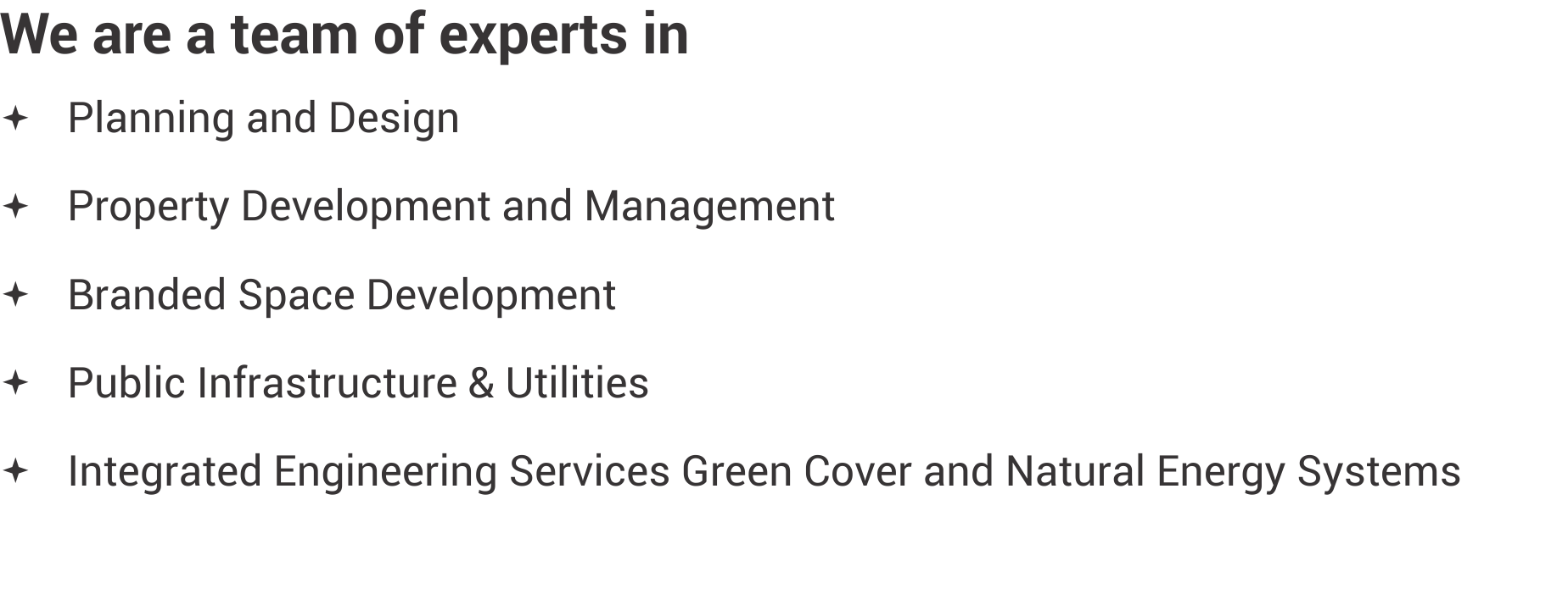 The cumulative experience of top management comes with a decade's expertise in understanding and addressing office and commercial space demands and development of state-of-the art residential properties.